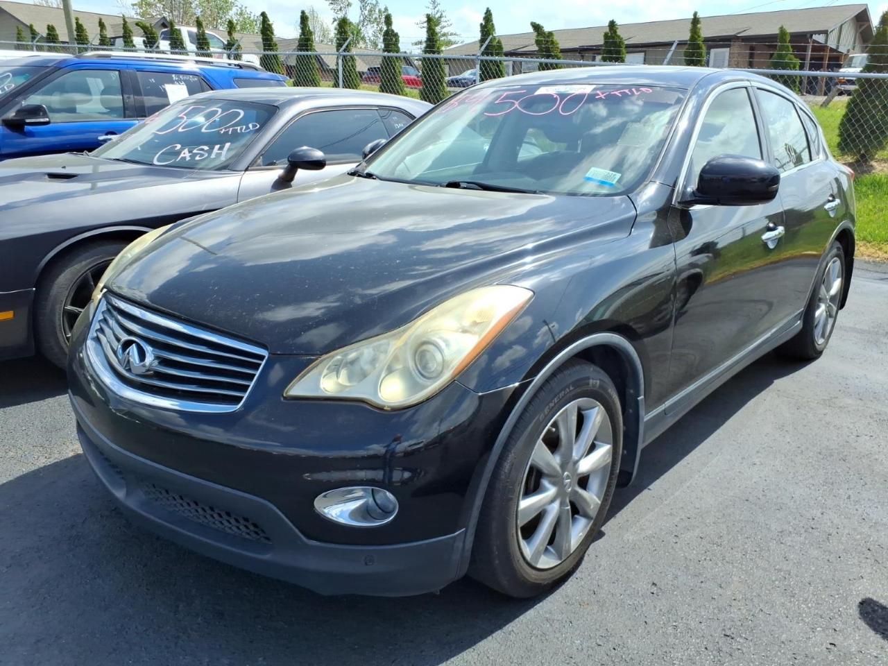 Get ready to cruise in style with this sleek black 2008 Infiniti EX! Picture yourself behind the wheel of this beauty, feeling the wind in your hair as you enjoy the smooth ride provided by its All-wheel Drive and powerful V6 engine. With plenty of space for all your friends and family, you can easily take this car on a road trip adventure or simply use it for your daily commute. The luxurious leather interior will make you feel like you're riding in first class, while the sunroof allows you to soak up the sun on those beautiful sunny days. Whether you're running errands around town or taking a long drive on the open road, this Infiniti EX will surely turn heads wherever you go. So why settle for an average ride when you can upgrade to this stylish and reliable Infiniti EX? Let the fun and excitement begin with this fantastic black beauty!